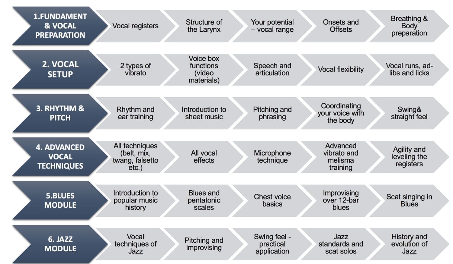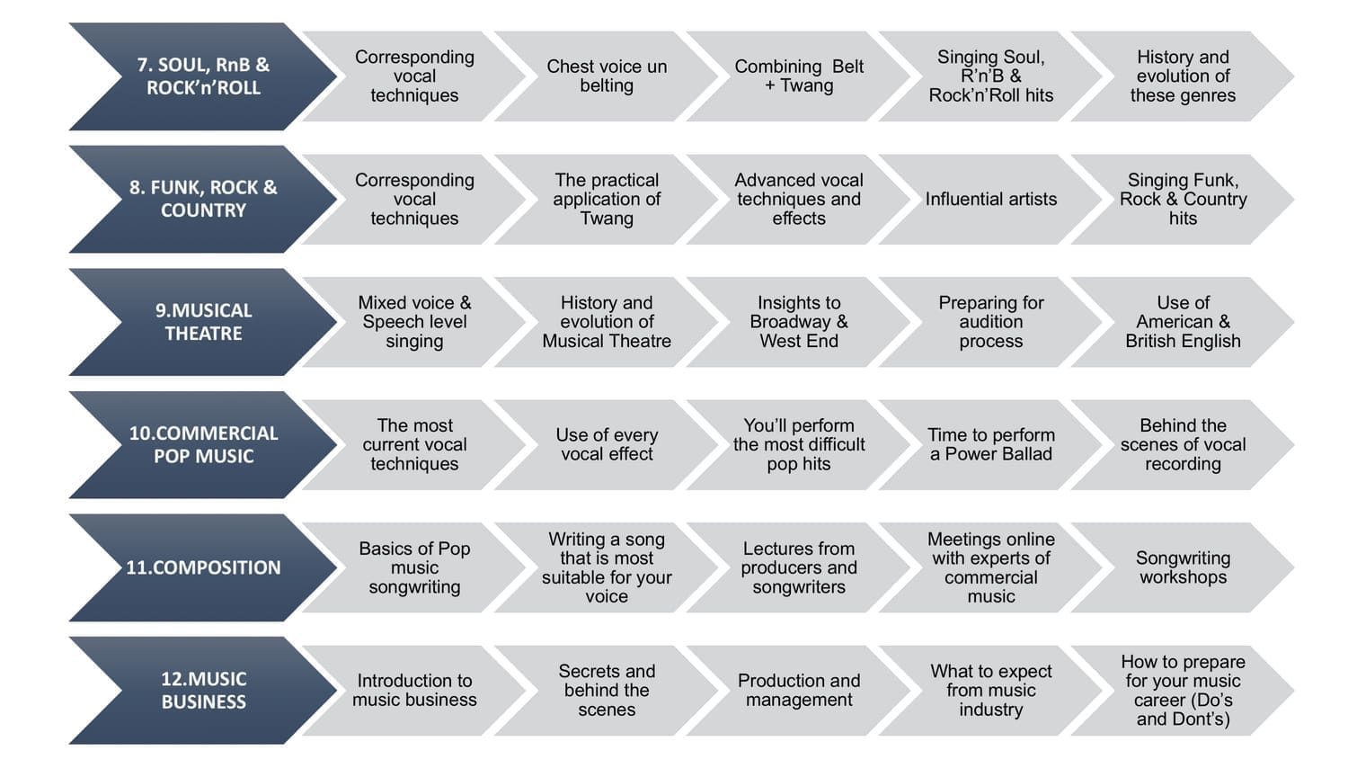 After completing the one-year program, you will have a complete understanding of how your voice works and will be able to perform songs of any level of complexity.
