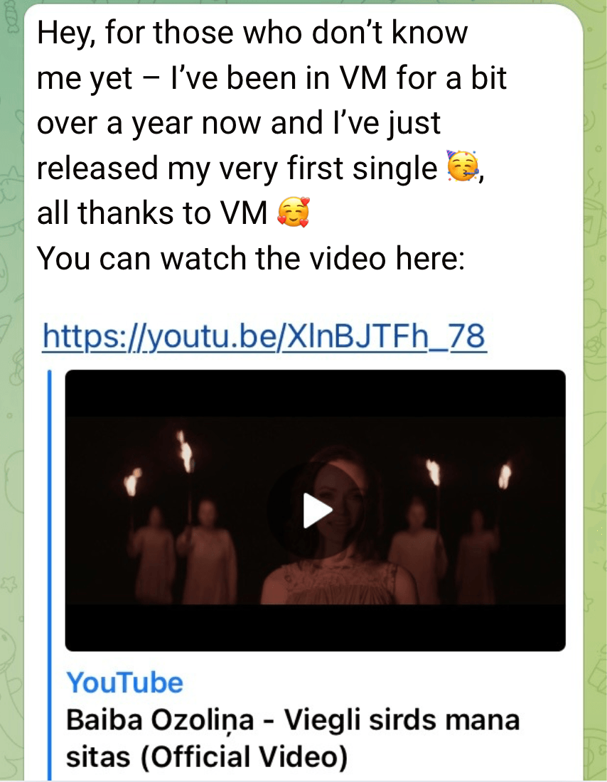 Even before completing the one-year program, Baiba recorded a song in a studio, made a music video, wrote an original composition, and released it as a single.