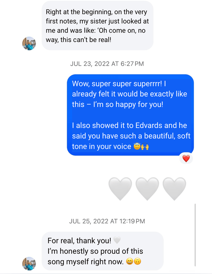 For the first time, my husband praised and appreciated my singing ā that meant a lot to me.