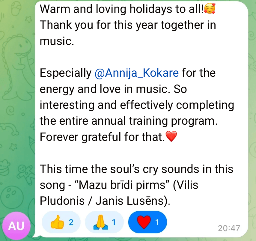 Today, Baiba has left her regular job to focus on music full-time, has released a solo album, and performs live concerts.